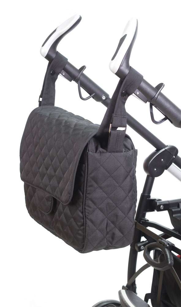 Сумка крепится к ручке коляски при помощи надежных кнопок, которые удобно расположены на ремне так, что Вы сможете пристегнуть сумку на цельную ручку коляски для новорожденных или на раздвоенную ручку коляски-трости.