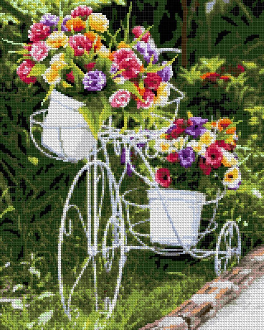 Алмазная мозаика 40х50 см Велосипед с цветами (полное заполнение)