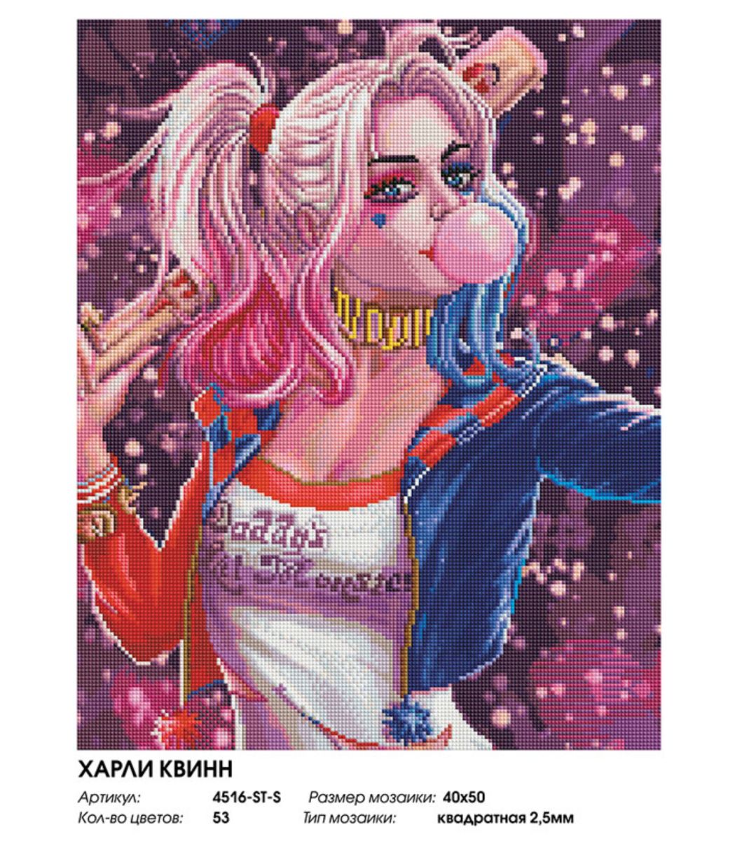 Белоснежка Алмазная Мозаика на подрамнике Харли Квинн 40х50