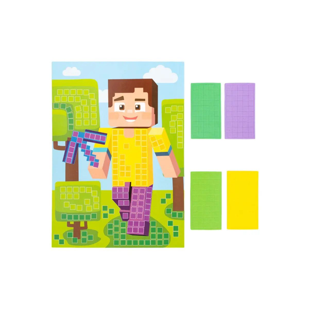 Состав набора: картонная карточка с напечатанным цветным рисунком (размер 18х25 см) – 1 шт; самоклеящиеся квадратики (7х7 мм) 4 цвета (желтый, зеленый, светло-зеленый, фиолетовый) – по 50 шт.