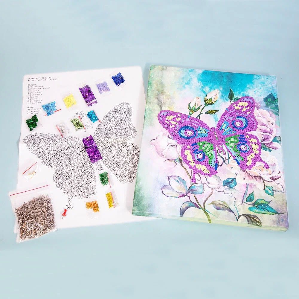 Мозаика из пайеток на холсте Волшебная Мастерская Бабочка МХ-15