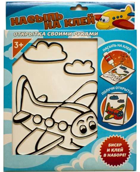 С помощью набора для творчества "Насыпь На клей. Самолет" малыш самостоятельно создаст яркую открытку, которую затем сможет подарить друзьям или близким. Все необходимое уже есть в наборе! Просто насыпь бисер на клей и получи открытку.