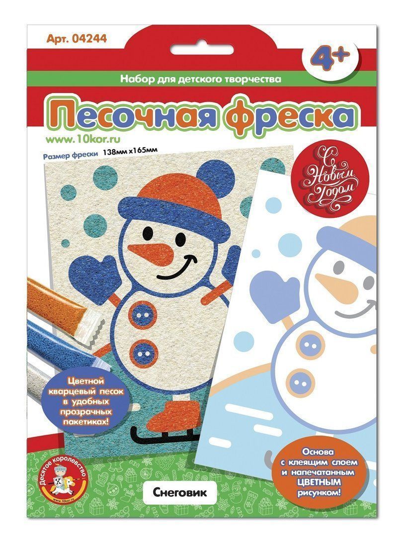 «Снеговик» - оригинальный новогодний набор для детского творчества, который позволит Вашему ребенку от 4-х лет создать яркую, оригинальную и праздничную картину.Интересная техника «засыпки» фрески цветным песком сделает творческий процесс увлекательным и веселым, научит малыша аккуратности и вниманию, способствует развитию мелкой моторики. Входящая в набор рамка придаст законченный вид картине. Готовая работа может стать замечательным подарком на Новый год. Состав цветной песочной фрески для детей «Снеговик: 1. Подложка на самоклеящейся основе с напечатанным рисунком 138х165 мм. 2. Заготовка для рамки (универсальная). 3. Цветной песок 7 цветов в пакетиках.