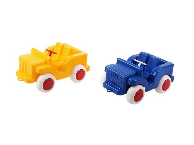 Пластиковый джип с утяжеленными колесами из ПВХ может ездить по инерционному принципу. У машинки нет острых углов, поэтому она совершенно безопасна. Она создана из качественного материала с использованием безопасных пищевых красителей. Игрушка подойдет для игры на улице и дома.