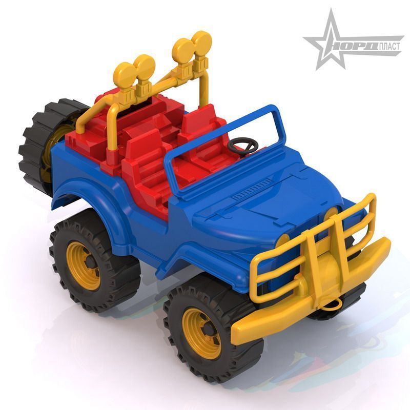 Этот внедорожник создан специально для передвижения по самым сложным маршрутам. За руль помещается небольшая фигурка водителя. Мощные рельефные колеса и усиленный бампер без труда смогут преодолеть неровности дороги. На таком автомобиле можно отправиться в любое путешествие! С помощью машинки ребенок развивают мелкую моторику, цветовое восприятие. Джип выпускается в двух вариантах кузова: открытый (арт. 045) и закрытый (арт. 046). *безопасный прочный пластик, четкая деталировка, яркие цвета, которые не выгорают на солнце, надежное крепление подвижных деталей, размер 29*18*23 см