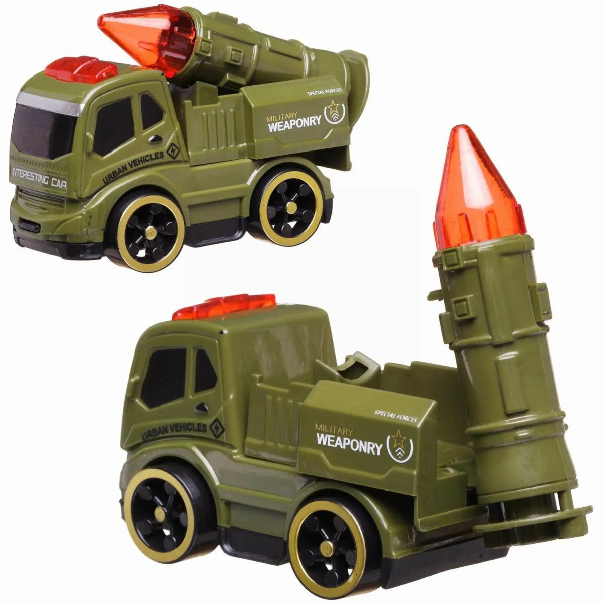 Боевая машина с ракетной установкой от бренда Junfa просто необходима мальчикам, которые любят военные игры и фильмы, будет хорошим дополнением коллекции машинок. Машина готова отправиться на боевое дежурство, чтобы обеспечить защиту родины. Она готова открыть огонь по противнику, используя ракетную установку, которая установлена на ее борту. Перед тем как произвести выстрел ракетная часть машины механически приводится в вертикальное положение. Большие колеса машины позволят ей проехать по самым непроходимым местам. Игра с машиной обязательно будет интересной и увлекательной.