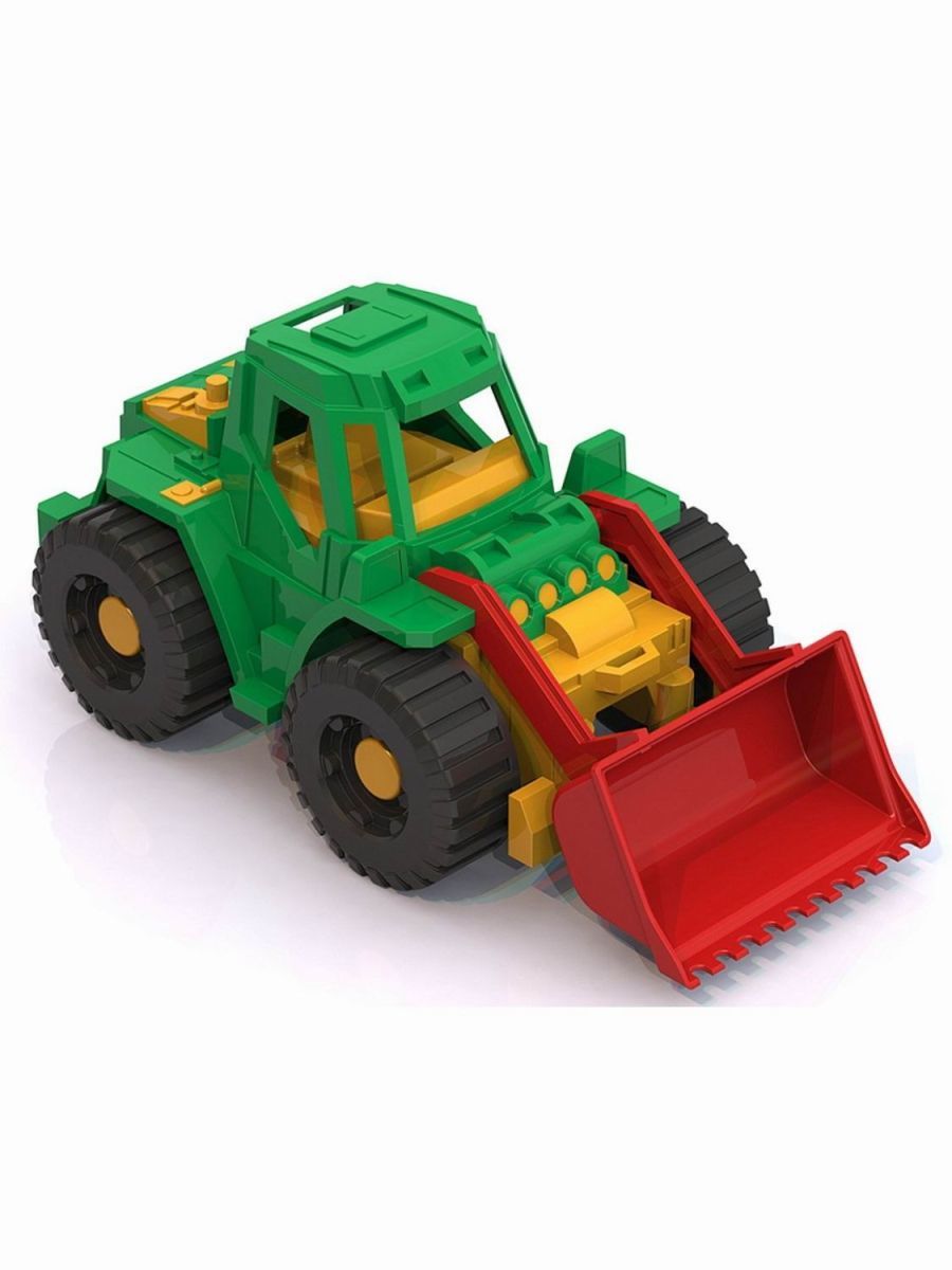 Тракторы производства Нордпласт отличаются своей реалистичностью, хорошей деталировкой и компактностью. Многофункциональная машинка для игры в песочнице и дома оснащена подвижным ковшом, который с легкостью расчистит площадку для строительства. Огромные рифленые крутящиеся колеса обеспечивают трактору отличную проходимость в любых условиях, а в кабину можно поместить небольшую фигурку водителя. Игрушка знакомит ребенка с устройством техники, развивает мелкую моторику, цветовое восприятие и воображение.