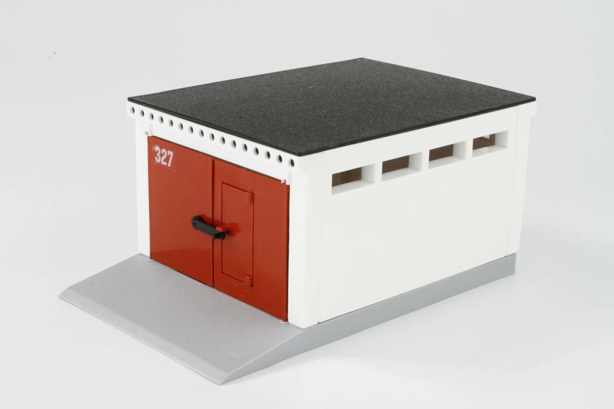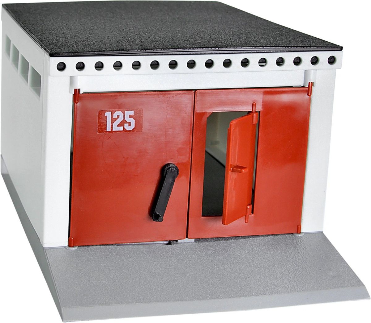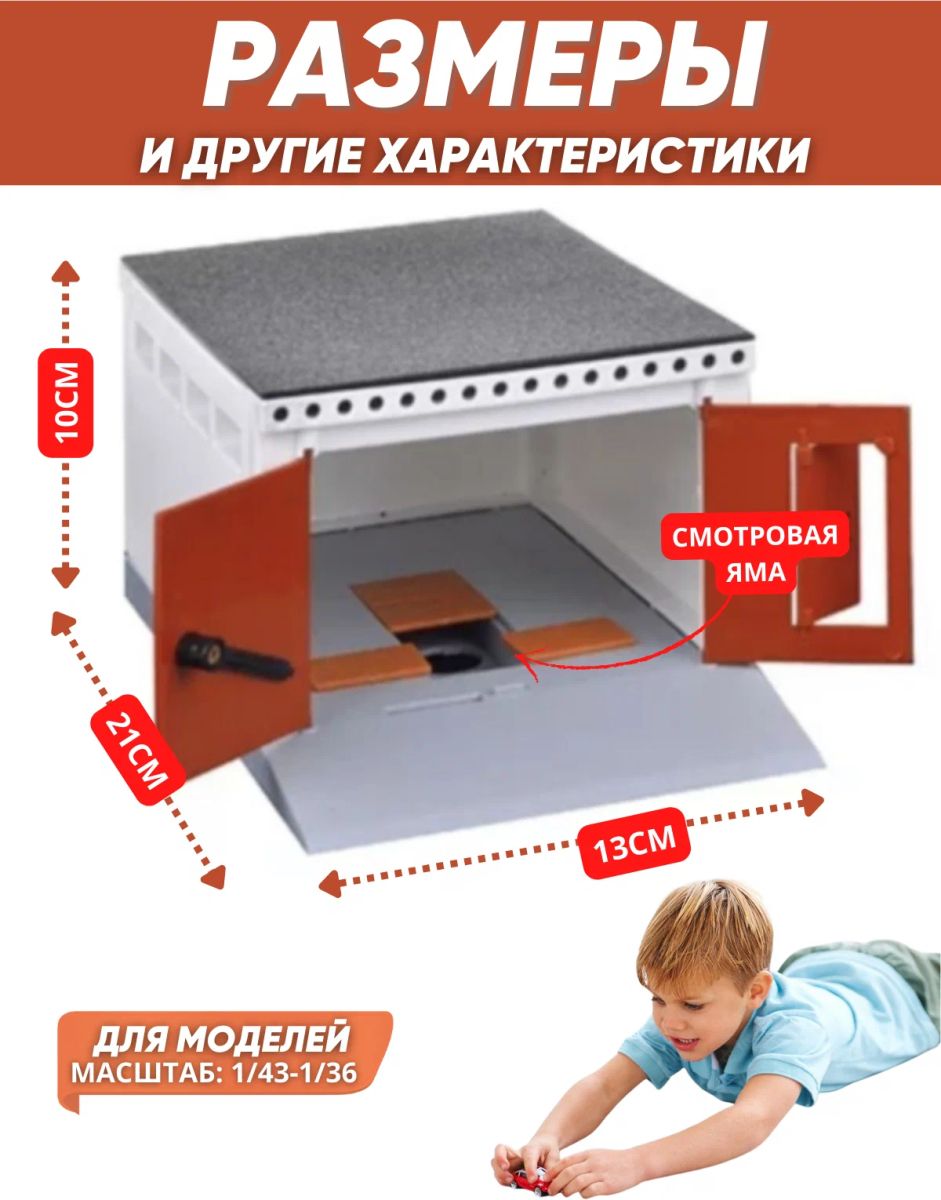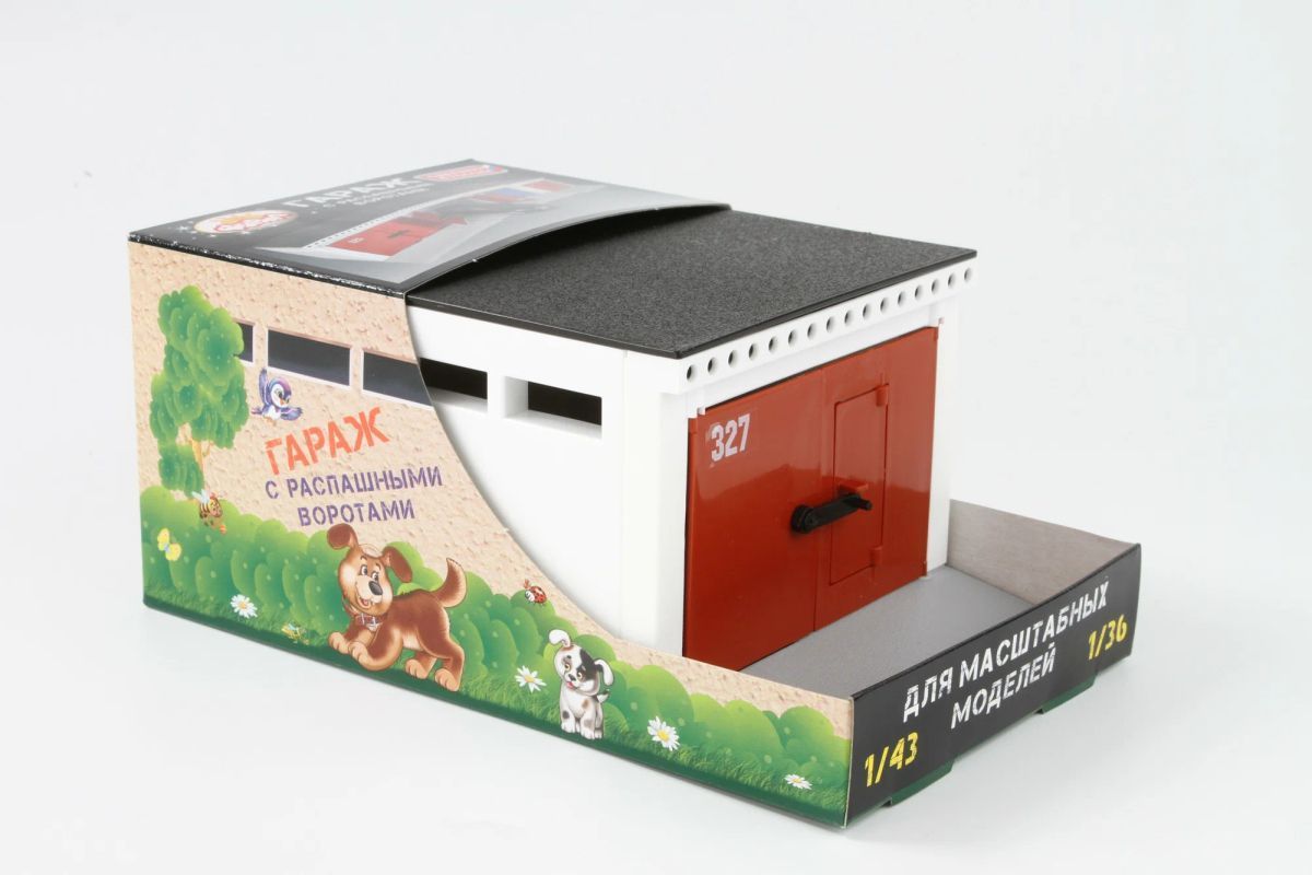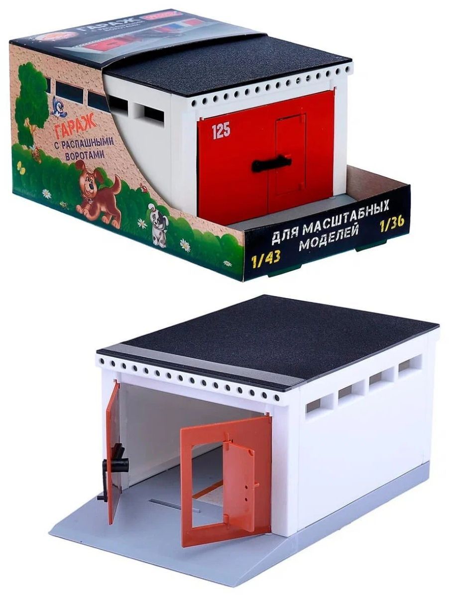 Особенностью гаража является наличие раскрывающихся ворот и калитки, которые открываются. Настил ремонтной ямы съемный, что позволяет использовать гараж для различных игровых сценариев.
