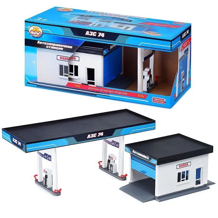 Игровой набор Форма АЗС для масштабных моделей С-199-Ф представляет собой модель автозаправочной станции и автомойки, которая станет отличным дополнением к треку для игрушечных автомобилей.