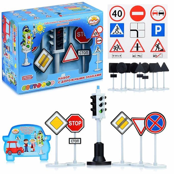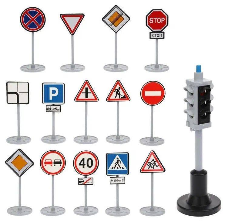 Набор "Светофор с дорожными знаками" - это уникальный аксессуар для игрушечного трека, который станет отличным дополнением к любой детской площадке. В комплект входят 14 дорожных знаков и светофор, которые помогут сделать игру более реалистичной и интересной.