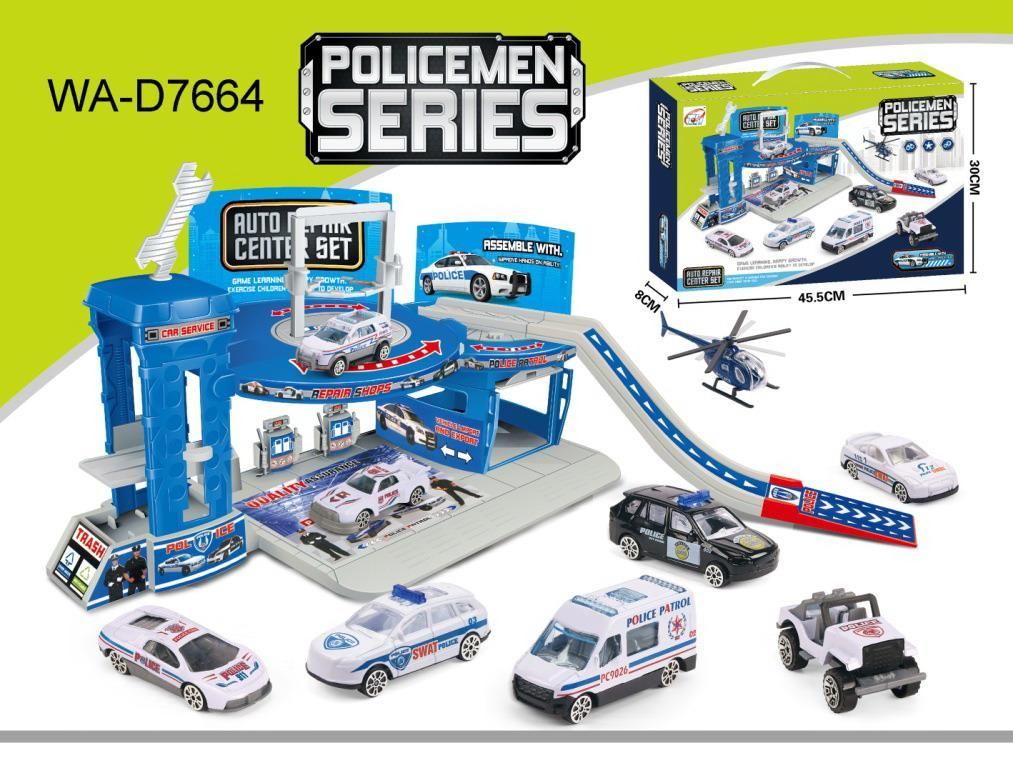Парковка-трек Junfa Полиция с 2 машинками, лифтом, аксессуарами