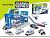 В комплекте: двухуровневая парковка с лифтом для перемещения машин между уровнями, заправочная станция, подъемник для осмотра и ремонта машин, гаражный отсек. Дорога обеспечивает подъем на второй уровень и спуск с него. Дополняют набор 2 машинки.