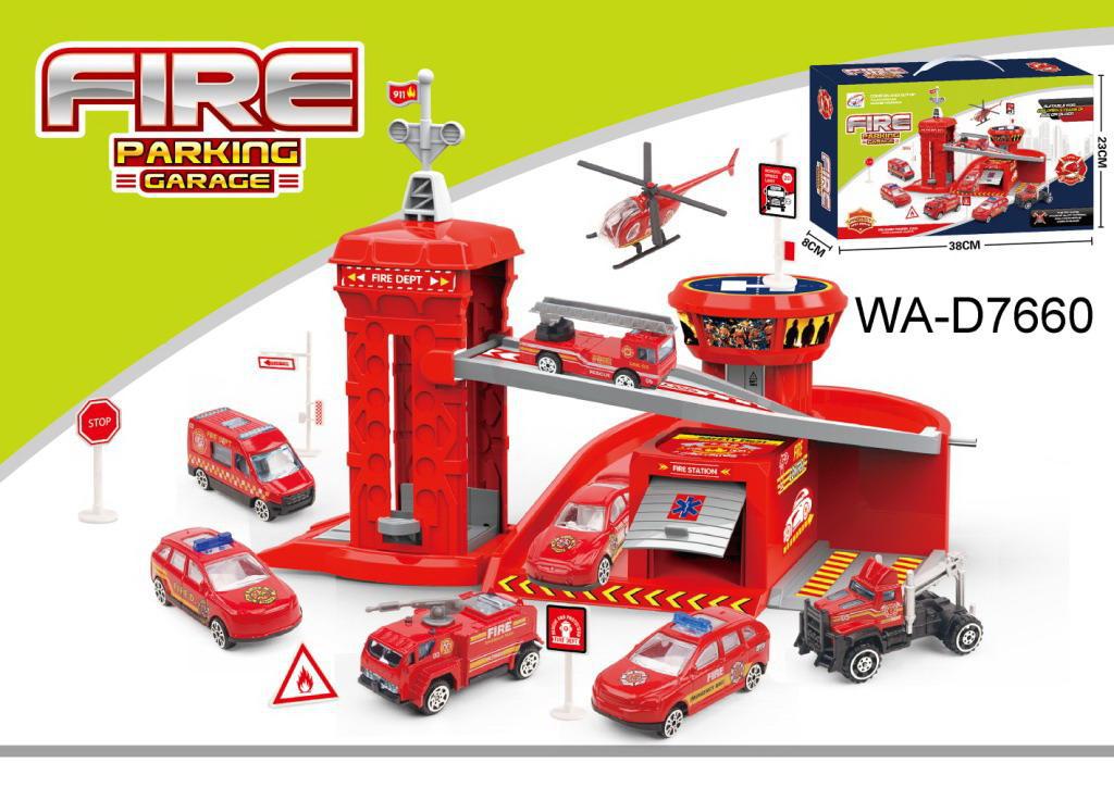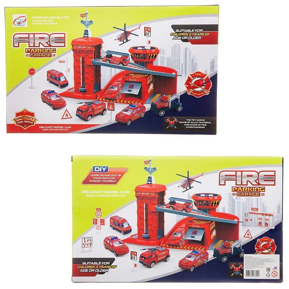 Парковка-трек Junfa Пожарная станция, с 2 машинками, лифтом, аксессуарами