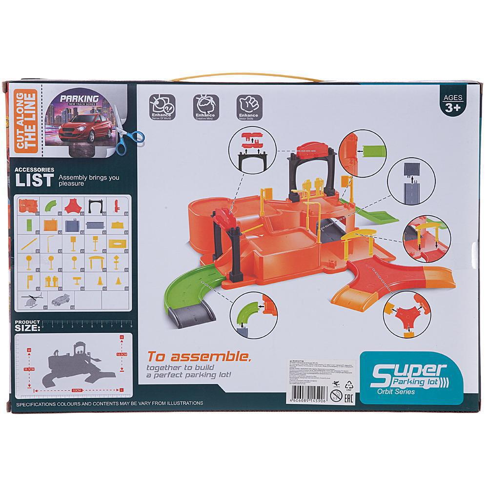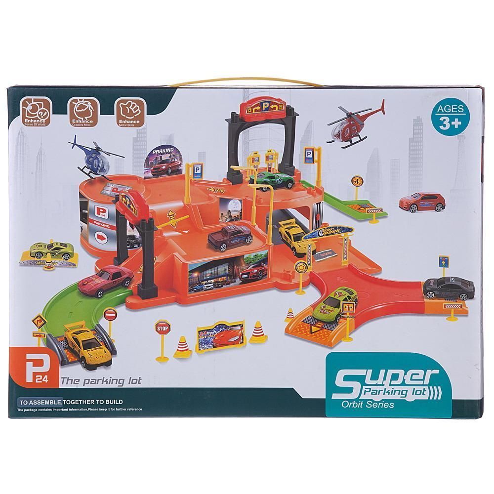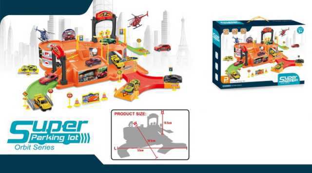 Игровой набор представляет собой разноуровневое сооружение с площадками, техобслуживанием, заездами и выездами. Данная парковка привлечет внимание мальчика благодаря отличному сходству с настоящим гаражом, яркому цветовому исполнению и возможности интересно проводить время в играх. Парковка дополнена металлическими машинками.