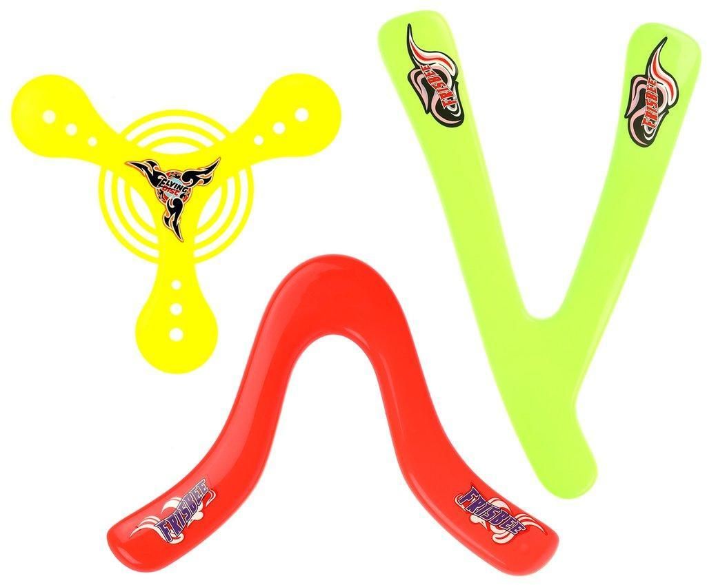 Набор бумерангов предназначен для захватывающей игры в фрисби на свежем воздухе. Суть этого развлечения заключается в том, чтобы подбрасывать предмет на определённое расстояние и ловить его. Игра развивает ловкость, меткость, внимание и скорость реакции.