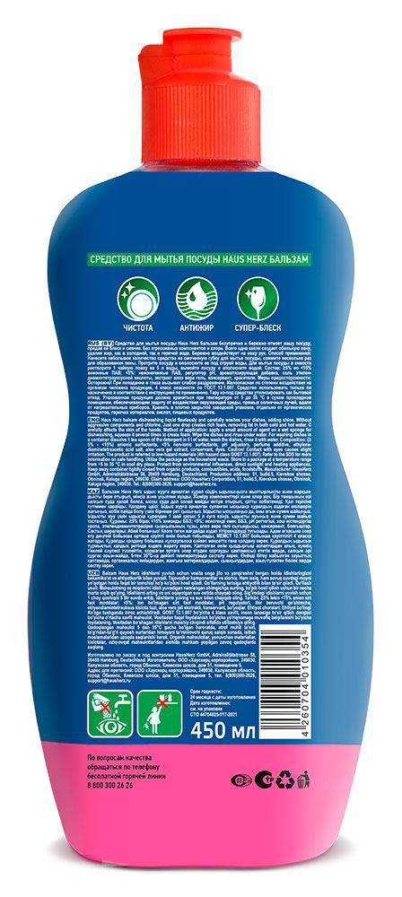 Средство для мытья посуды Haus Herz Бальзам, 450мл