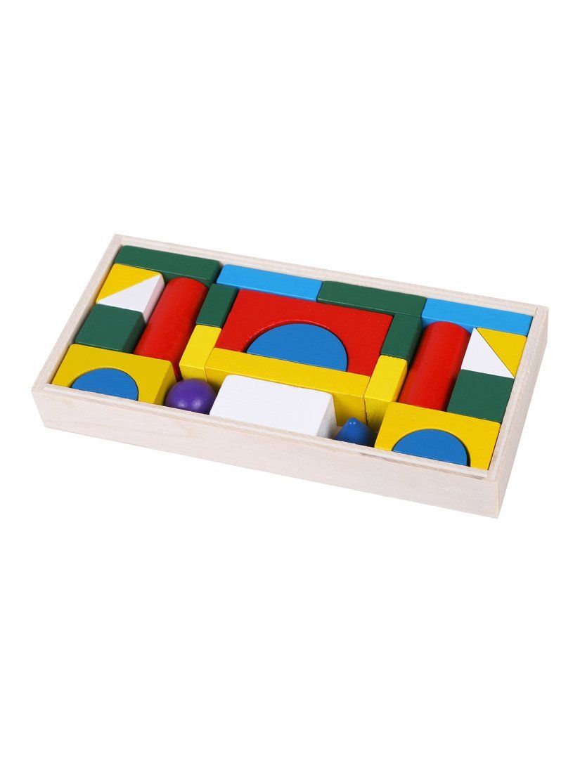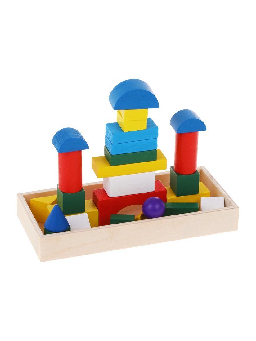 Деревянный конструктор состоит из 26 деталей разного цвета и разной геометрической формы. Это небольшой и довольно компактный набор классического деревянного блочного конструктора. Детали конструктора никак не скрепляются между собой, их можно ставить или просто укладывать друг на друга, создавая различные объемные композиции – домики, замки. Конструктор отлично подойдет для малышей. Он прекрасно развивает фантазию, пространственное мышление и воображение, а также мелкую моторику рук.