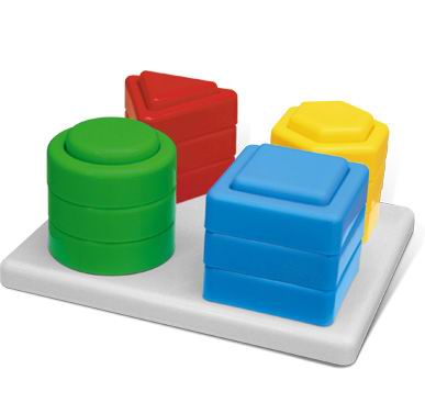 А когда ребенок освоится, можно научить его подбирать фигурки и столбики, собирать пирамидки.