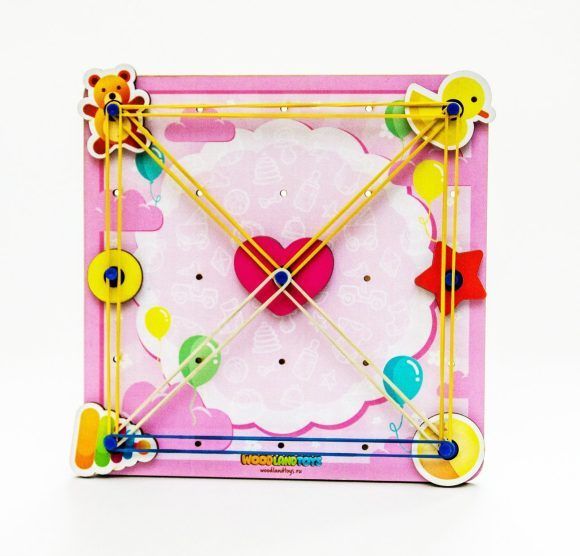 Геоборд – это игрушка для познавательно-математического развития ребенка. Геоборд представляет собой деревянное поле с тематическим изображением, на котором расположено 25 штырьков (5 рядов и 5 столбцов), тематические фигуры, схемы сборки и набор цветных резинок. Задача ребенка на штырьки натягивать резинки для получения всевозможных силуэтных изображений – букв, цифр, геометрических фигур, сюжетных картинок. Ребенок может повторить готовую схему или придумать свое собственное изображение. Наличие дополнительных тематические элементов, помогает разнообразить игровую деятельность, развивая воображение и фантазию. Игры с Геобордом развивают логическое мышление, память, моторику рук, координацию движения, зрительное и тактильное восприятие. Геоборд станет незаменимым помощником в формировании математических представлений, а также подарит ребенку массу положительных эмоций и займет его на продолжительное время.