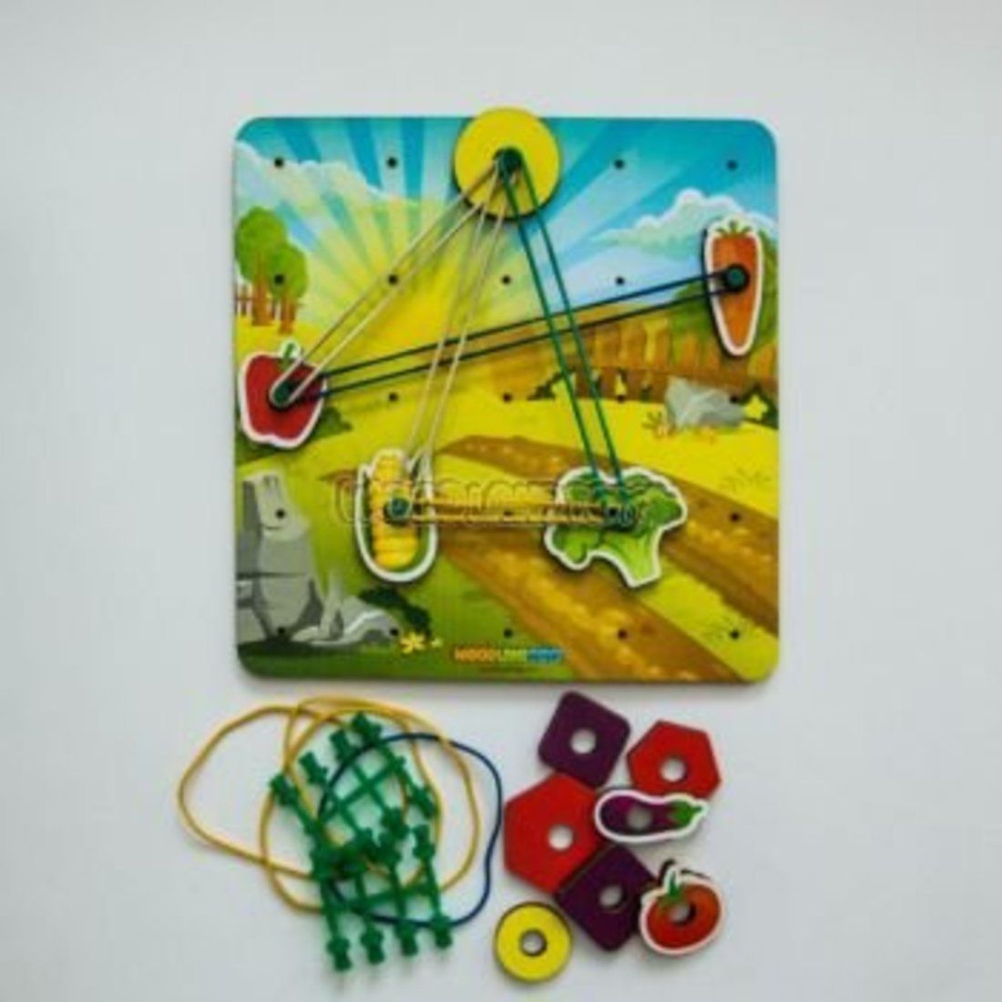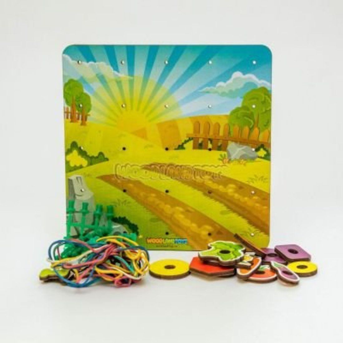 Геоборд – это игрушка для познавательно-математического развития ребенка. Геоборд представляет собой деревянное поле с тематическим изображением, на котором расположено 25 штырьков (5 рядов и 5 столбцов), тематические фигуры, схемы сборки и набор цветных резинок. Задача ребенка на штырьки натягивать резинки для получения всевозможных силуэтных изображений – букв, цифр, геометрических фигур, сюжетных картинок. Ребенок может повторить готовую схему или придумать свое собственное изображение. Наличие дополнительных тематические элементов, помогает разнообразить игровую деятельность, развивая воображение и фантазию. Игры с Геобордом развивают логическое мышление, память, моторику рук, координацию движения, зрительное и тактильное восприятие. Геоборд станет незаменимым помощником в формировании математических представлений, а также подарит ребенку массу положительных эмоций и займет его на продолжительное время.