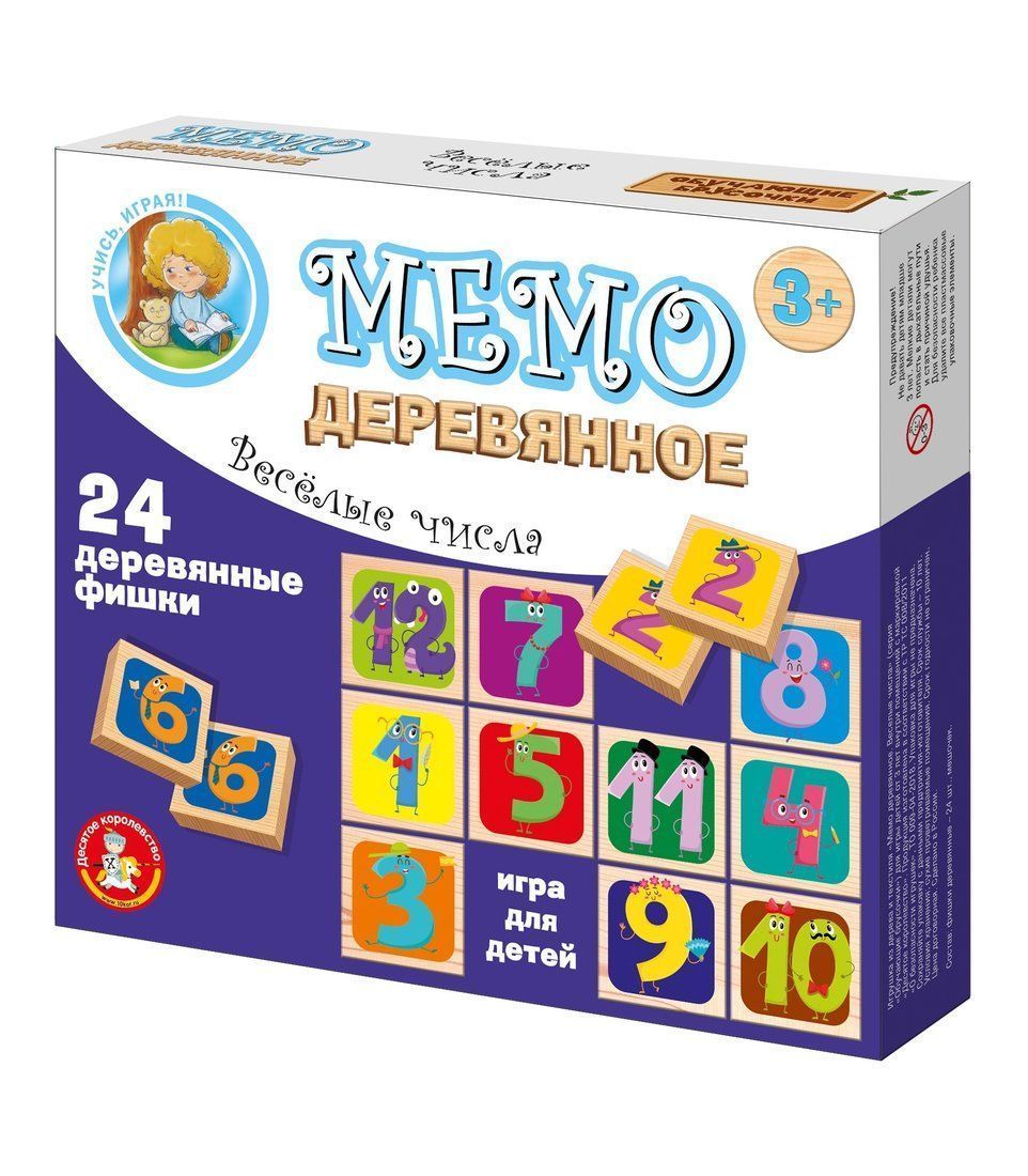 Классическая игра формата «мемо» для тренировки памяти. Состав игры: деревянные фишки – 24 шт. (3 х 3 х 1 см), текстильный мешок. Материалы: дерево, текстиль. Картинки нанесены на фишки с помощью прямой печати по дереву. Игра для 1-2 игроков, для детей от 3 лет. Правила игры на обороте коробки. Развивает логику, память, знакомит с числами от 1 до 12.