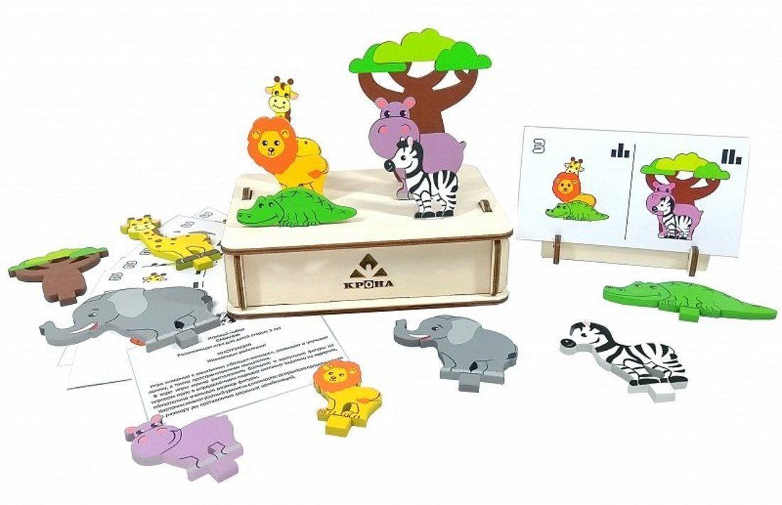 Игра знакомит с понятиями «больше-меньше», развивает и улучшает логику, а также пространственное мышление, учит располагать предметы в пространстве. В ходе игры нужно расположить большие и маленькие фигуры на игровом поле в определённом порядке согласно заданию на карточке, обязательно учитывая размер фигуры.Карточки имеют разный уровень сложности от простого сопоставления по размеру до составления сложных комбинаций. В углу карточки находится графическое изображение, обозначающее: большие фигуры и маленькие фигуры. В комплект входит: коробка с игровым полем - 1 шт., инструкция – 1 шт., подставка для карточек - 1 шт., фигурки – 14 шт., двухсторонние цветные карточки – 12 шт.