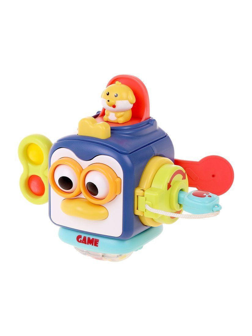 поп-ит, покрутите трещотку и барабан-погремушку с бусинами. Поверните ключик и