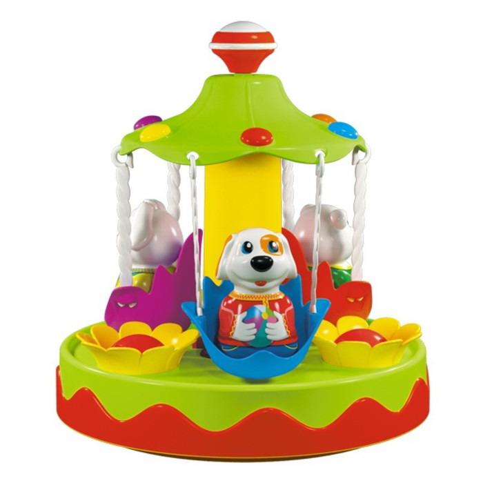 На карусели в сиденьях-цветочках под веселую музыку кружатся симпатичные зверюшки в нарядных костюмах. Фигурки легко вынимаются и могут участвовать в сюжетно-ролевых играх или в постановках домашнего кукольного театра.