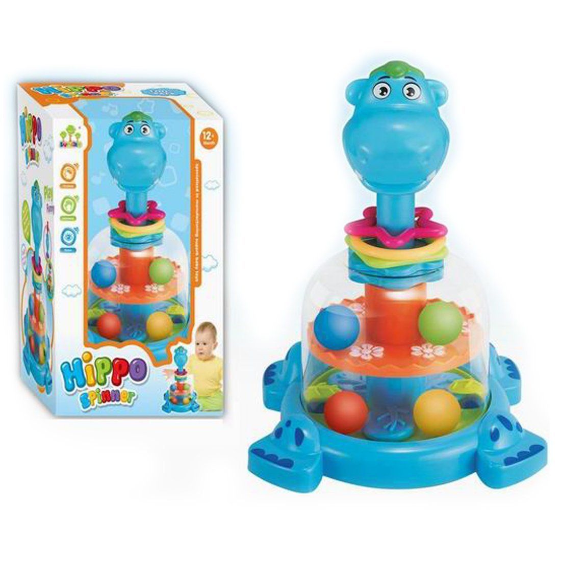 Яркая и завораживающая игрушка «Юла» завладеет вниманием каждого малыша! Игрушка выполнена в виде забавного бегемотика. Если нажать игрушечному животному на голову, внутри его корпуса начнут вращаться разноцветные диски с весёлыми шариками. За этим красочным хороводом так интересно наблюдать! На шее у бегемотика расположено 3 фигурных элемента (квадрат, круг, звёздочка), которые можно перебирать пальчиками и тренировать мелкую моторику.