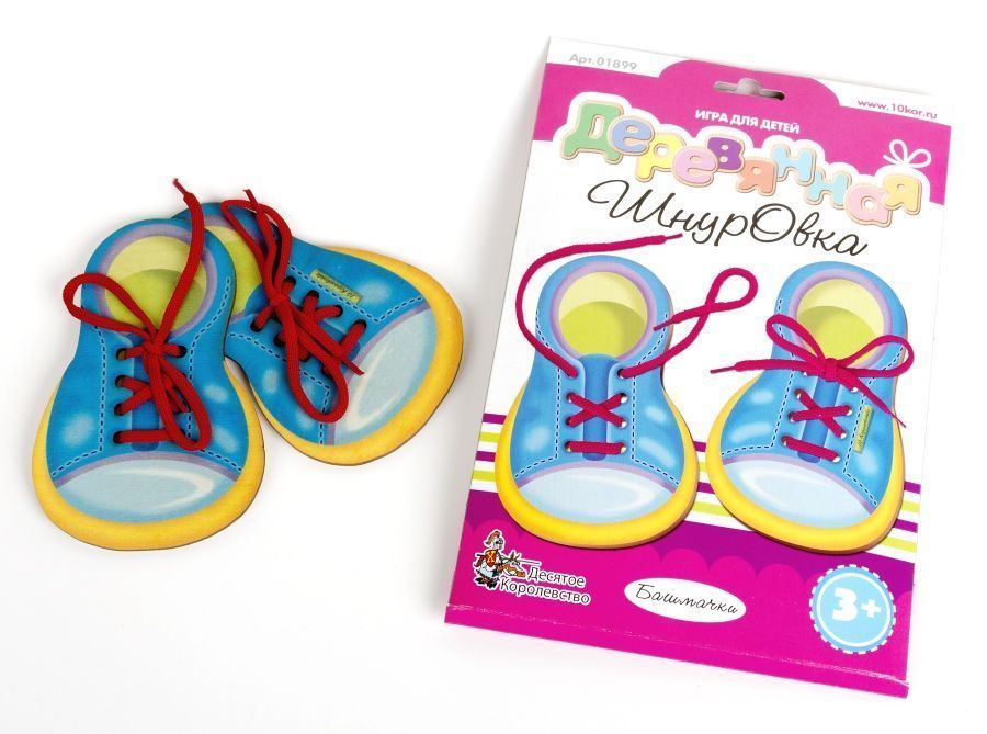 Оригинальная деревянная шнуровка, выполненная в форме детских башмачков, научит малыша шнуровать обувь, а правильный результат подарит малышу массу положительных эмоций, позволит непоседе от 3-х в процессе этой увлекательной игры развить мелкую моторику, внимание, логическое мышление, координацию движения рук, укрепить мускулатуру пальчиков.