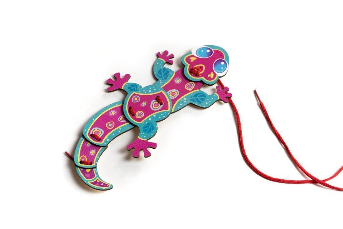 Шнуровка представляет собой изделие с уже завязанным шнурком. Вначале нужно показать ребенку, как играть с этой игрушкой. Для этого сами расшнуруйте предметы и снова зашнуруйте их, повторив действие несколько раз. Комментируйте свои действия – это поможет ребенку запомнить их последовательность и позволит быстрее освоить навык завязывания шнурков.