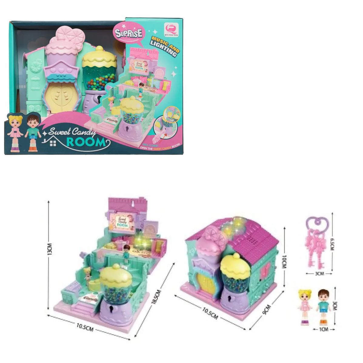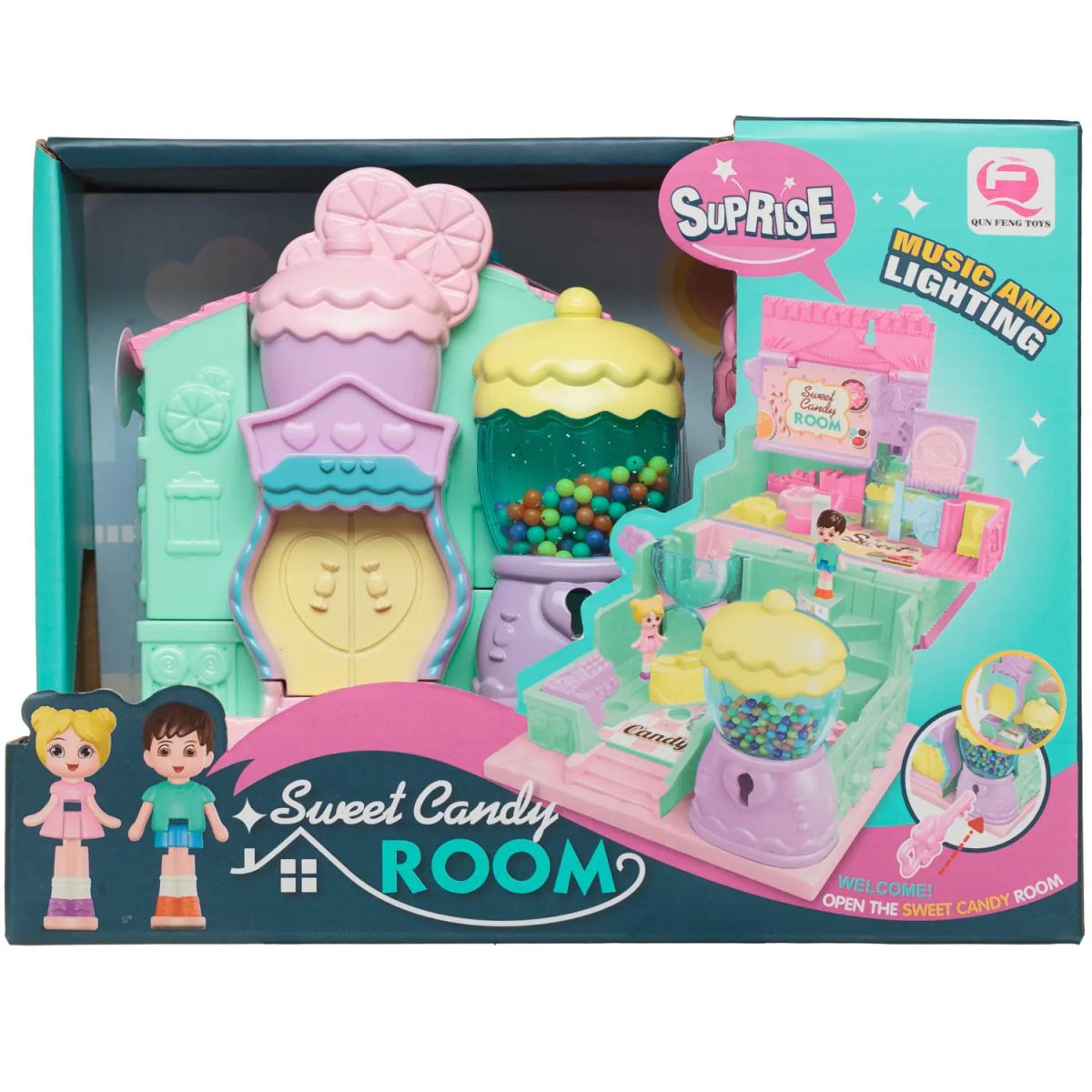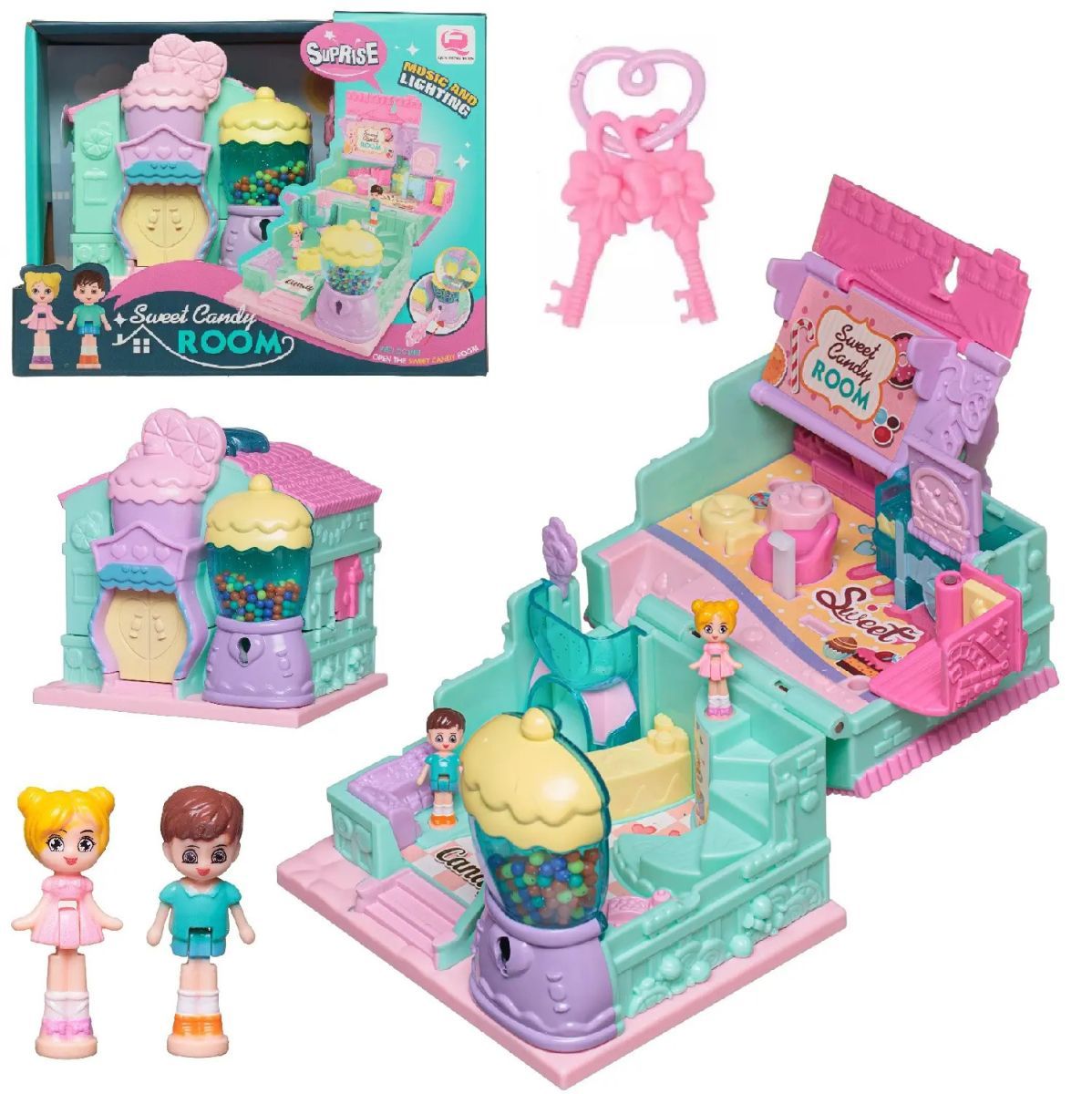 Волшебный красочный кукольный домик от бренда Junfa приведёт малышку в неописуемый восторг не только своим внешним видов, но и множеством тайн и секретов, которые спрятаны внутри него. Перед входом в домик-кондитерскую уставлена большая банка с конфетками. Чтобы разгадать главную тайну домика, нужно вставьте ключ в замочную скважину и раскрыть домик, превратив его в двухэтажное кафе. На первом этаже расположена стойка для оформления заказа, на втором этаже находится уютная зона, где посетитель может отведать все вкусности, предлагаемые в кафе. Разыграть тематические сценки ребенку помогут две фигурки мальчика и девочки. Некоторые предметы обстановки можно открыть, разложить, повернуть. Игры с домиком способствуют развитию цветового и эмоционального восприятия, воображения, мышления, тактильных ощущений и мелкой моторики. Подарите дочурке домик мечты!