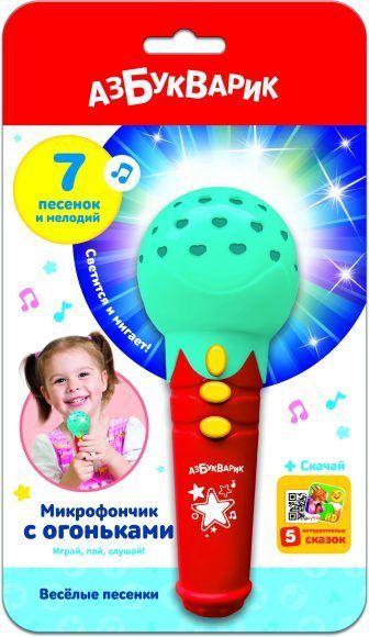 Яркий микрофончик порадует малышей любимыми песенками и веселыми огоньками! Нажимай на кнопочки – слушай детские хиты («Улыбка», «Если добрый ты»), забавные потешки («Ладушки», «Два весёлых гуся», «Сорока-белобока»), зажигательные мелодии («Песенка про кузнечика», «Весёлая карусель»). Подпевай и танцуй, а микрофончик будет светиться под музыку! Благодаря компактным размерам игрушку удобно взять с собой на прогулку или в гости – и малыш сможет петь и танцевать, когда захочет!