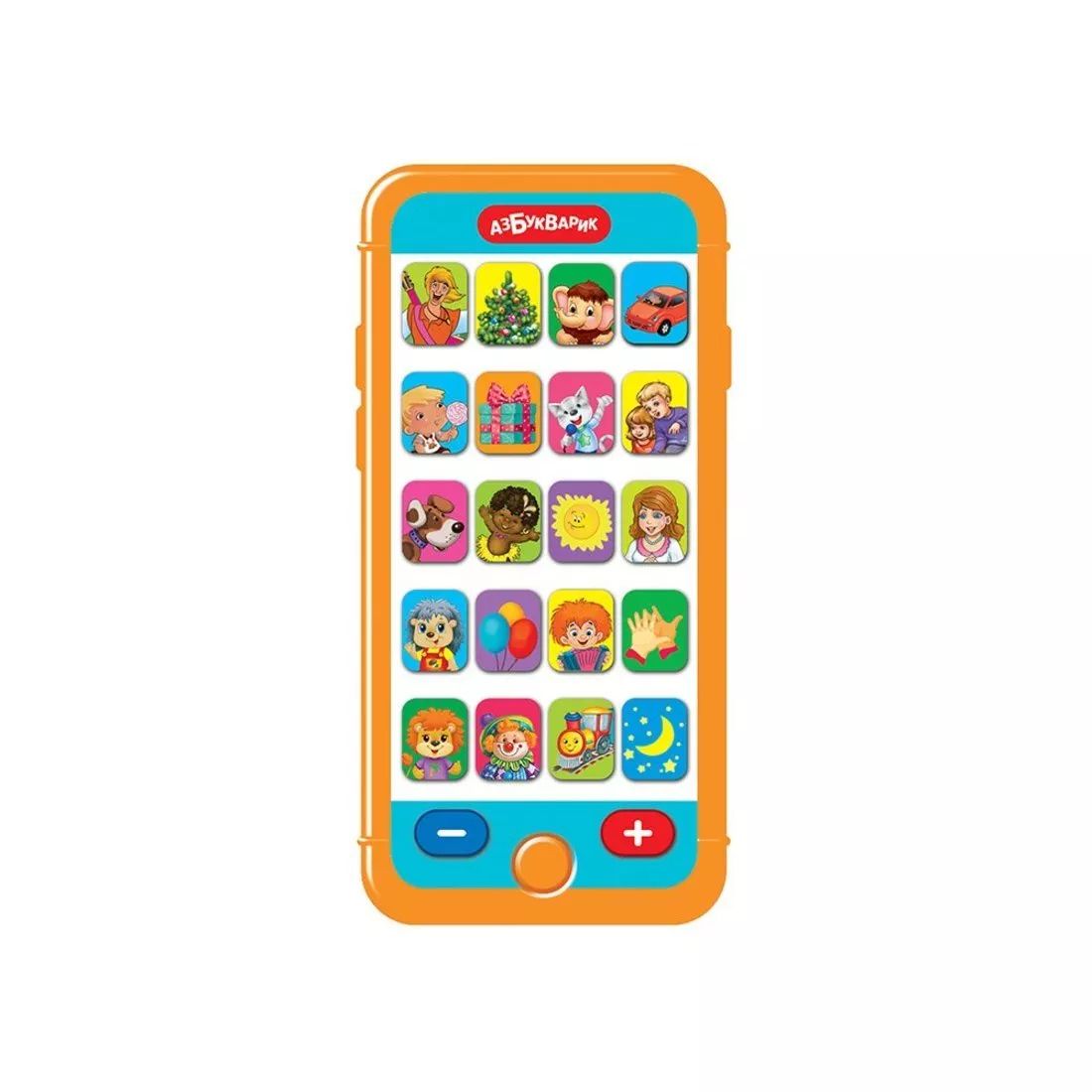 Мультиплеер «Добрые друзья» выглядит как настоящий взрослый смартфон! В нем собрано 20 популярных детских песенок («Ничего на свете лучше нету», «Расскажи, Снегурочка», «Песенка Мамонтёнка», «Бибика», «Барбарики», «Пусть бегут неуклюже», «Как чудесно жить на свете», «Друзья», «Питомцы», «Чунга-чанга», «Песенка о лете», «Мамочка», «Облака», «Что такое праздник?», «Антошка», «Если весело живётся, делай так», «Песня Львёнка и Черепахи», «Пляшут весело детишки», «Чуку-чу», «Спи, моя радость, усни»). Нажимай на кнопочки с яркими картинками – слушай и подпевай! Громкость звука регулируется.