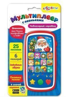 Интерактивная развивающая игрушка Азбукварик Мультиплеер с огоньками Новогодний хоровод, красный