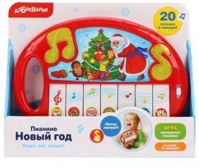 Новогоднее пианино для самых маленьких со светящимися нотками! В режиме "Волшебное пианино" малыши смогут сыграть 6 популярных новогодних мелодий: "Ёлочка", "Рождественская песенка", "Почему медведь зимой спит?", "В лесу родилась ёлочка", "Ой, мороз, мороз", "Белые снежинки". А переключив режим, - послушать любимые песенки ("Что такое Новый год?", "Песенка Умки", "Белые снежинки", "Песня Деда Мороза", "В лесу родилась ёлочка", "Кабы не было зимы", "Песня о снежинке") и мелодии ("Три белых коня", "Ёлочка", "Расскажи, Снегурочка", "We Wish You A Merry Christmas", "Валенки", "Зима", "Колыбельная медведицы").