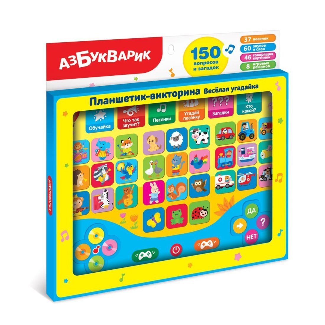 Ваш малыш хочет много знать? Тогда этот новый игровой планшетик – для него! В нем собрано 30 познавательных песенок про животных, машинки и музыкальные инструменты, 150 вопросов и загадок, множество голосов и звуков! Выбери игру и попробуй ответить правильно на все вопросы! Всего в планшетике 8 игровых режимов: «Обучайка», «Что так звучит», «Песенки», «Угадай песенку», «Кто какой?», «Загадки», «Верю – не верю» и «Суперигра». Умные игры можно чередовать с прослушиванием песенок – так играть гораздо веселее!