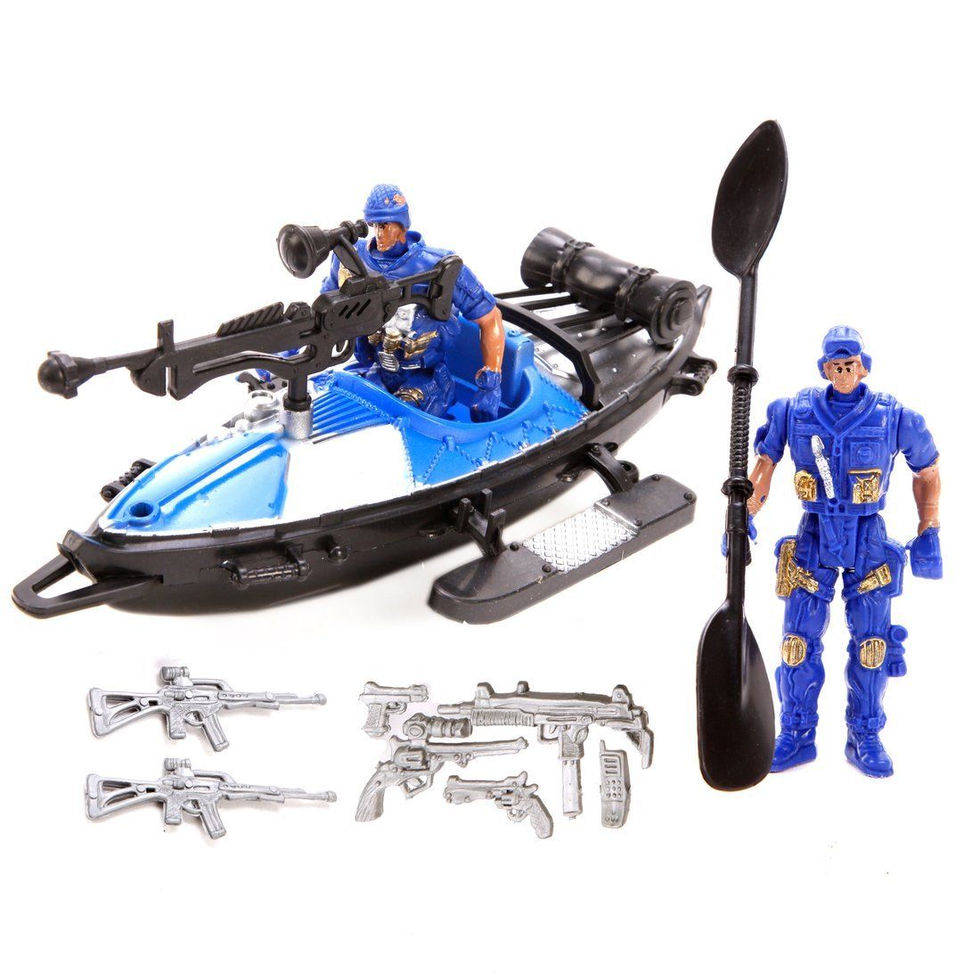 2 фигурки полицейских, лодка, игрушечное оружие
