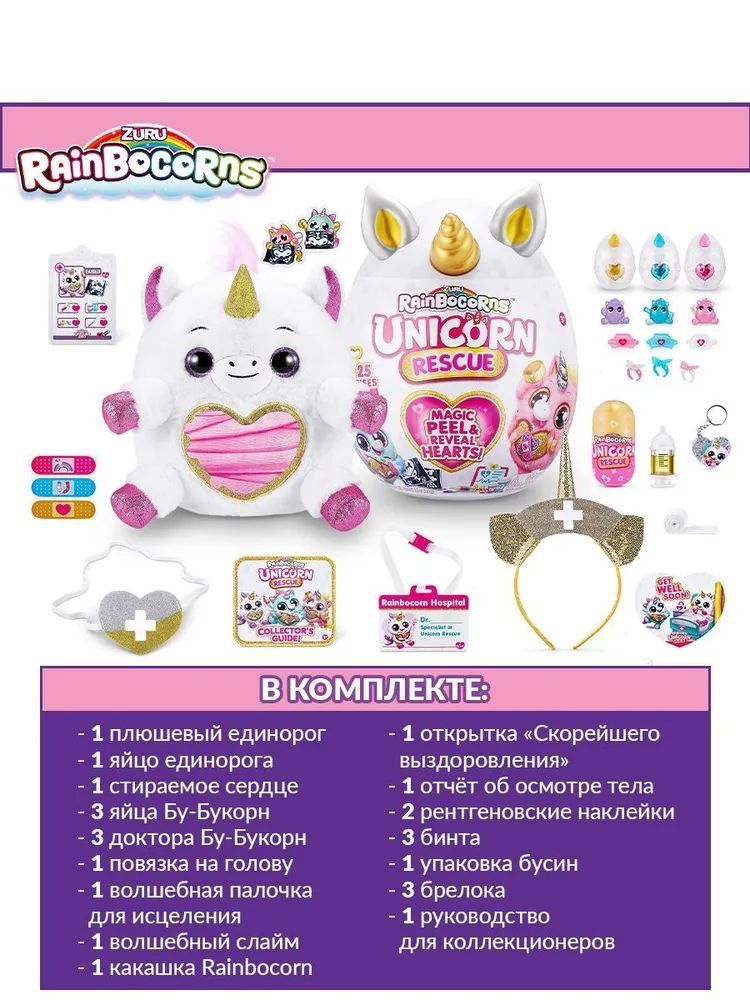 Обнимите и прижмите к себе этих пушистых друзей, чтобы помочь их вылечить вместе с Rainbocorns Unicorn Rescue!