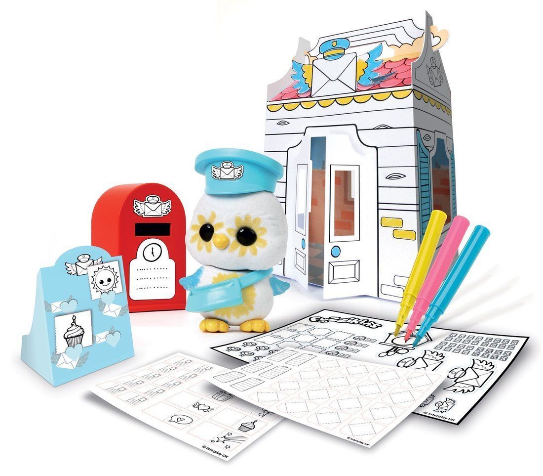Фуззики - это милые питомцы, которых можно раскрашивать как тебе хочется! Фломастеры легко смываются водой, и ты можешь раскрашивать игрушки вновь и вновь, создавая каждый день новые образы для своего питомца. Игровой набор состоит из сборного домика Почтового отделения и флокированной фигурки птички, которая является главном почтальоном на улице Фуззи. У питомца есть все, что необходимо для работы: шляпа, сумочка для писем, почтовый ящик, открытки и марки. В наборе вы найдете смывающиеся водой фломастеры, чтобы украсить и персонализировать флокированного малыша,множество аксессуаров и стикеров, каждый из которых можно задекорировать на свой вкус и цвет. Создайте оживленную улицу с наборами Фуззи-стрит! Игровые наборы "Улица Фуззи - Пиццерия" и "Улица Фуззи - Кафе-мороженое" идеально дополнят твою улицу! Фуззики. Целый мир воображения и игр!