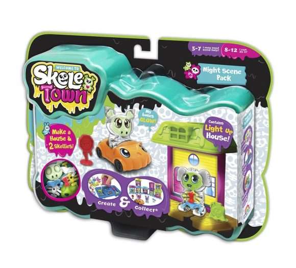 Отправься в путешествие по ночному городу Skellytown! Создай два 3d-героя Skelly c помощью геля Skelly, литейной формочки и специальных деталек. Когда герои будут готовы, поставь их на свет лампочки или посади за руль машинки, чтобы освоиться в новом городе.