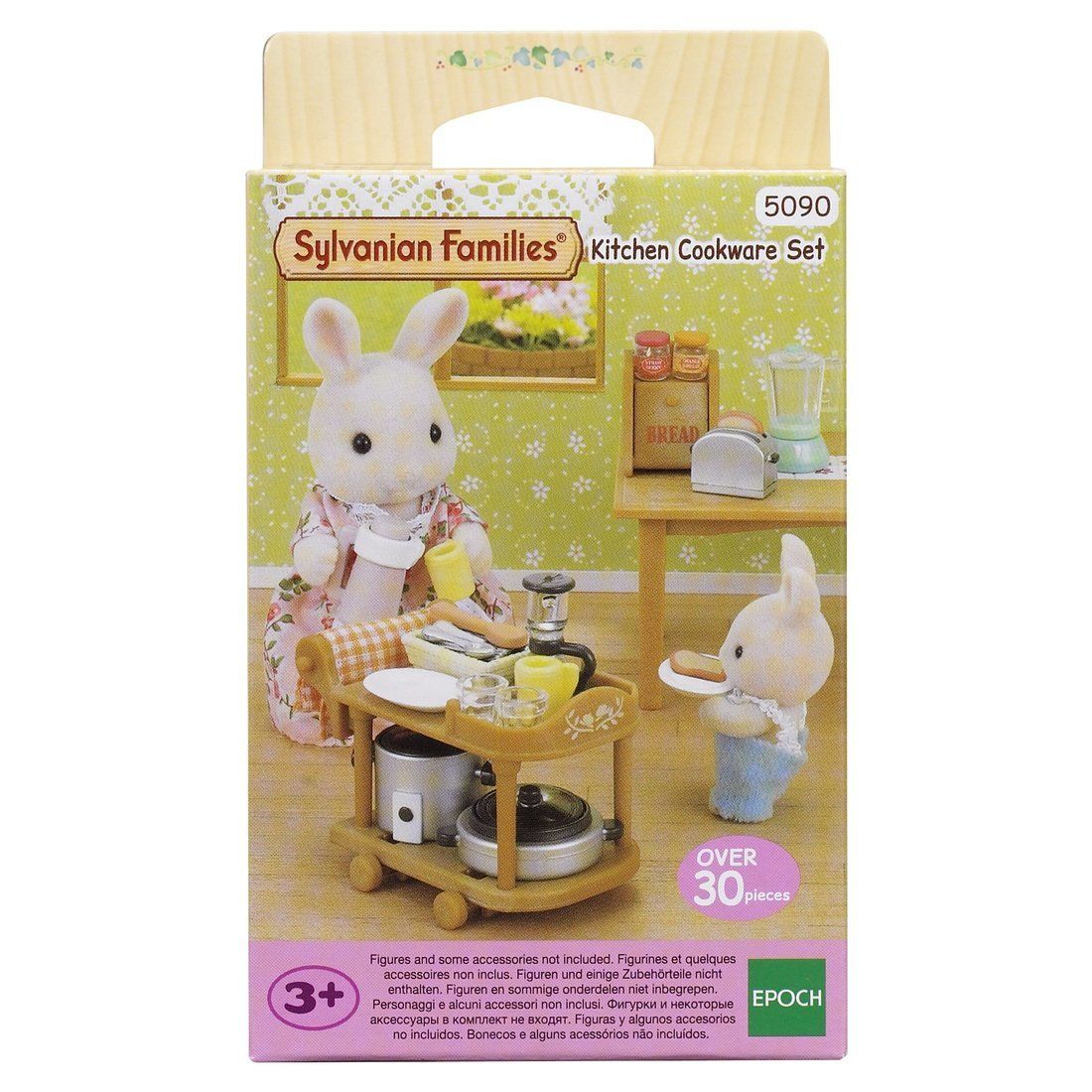 Как прекрасно утром собраться всем семейством за красиво сервированным столом и позавтракать вкусными тостами! С игровым набором «Кухонная посуда» Sylvanian Families можно устроить приятные посиделки или вместе приготовить покушать. Нижняя полка – специально для кастрюль, также там поместится термос. На верхней полке с красивым бортиком логично поставить мелкую кухонную утварь – чашки, бокалы, тарелки, корзинку со столовыми приборами, тостер и кофеварку. Если понадобится досолить или поперчить блюдо – на полочке разместились баночки со специями. Соковыжималка и пароварка остаются на кухне. И не забудьте о красивых клетчатых салфетках – это главный элемент декора в наборе кухонной посуды. • Сервировочный столик оснащен подвижными колесами и удобной ручкой, с помощью которых он перемещается по поверхности. • Дверца хлебницы открывается. • Тостер похож на реальный кухонный прибор – он имеет два отверстия для хлеба и имитацию ручки для нажатия. • Крышки к кастрюле и пароварке съемные.