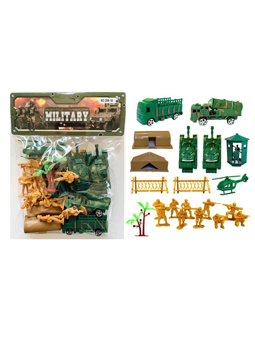 Игра в солдатики – одна из любимых забав мальчишек! С помощью набора «Военный» можно с легкостью создать свою собственную игрушечную армию и смоделировать наступление или оборону войск. В комплекте прилагаются 23 игрушечных предмета, среди которых: фигурки солдатиков и аксессуары. Изготовлено из полимерных материалов. Рекомендованный возраст: 3 года +