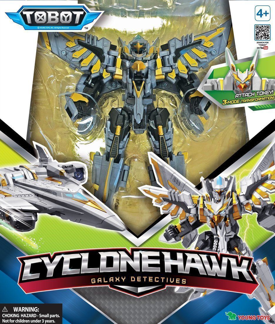 Тобот-трансформер Циклон Хок создан по мотивам нового 2-го сезона мультсериала "Тоботы. Детективы Галактики" (премьера осенью 2021г.на канале "Карусель"). Игрушка полностью повторяет образ персонажа из мультфильма, трансформируется в крутой истребитель и обратно. В наборе идет специальный ключ-токей, необходимый для трансформации. В наборе: Тобот, ключ-токей, инструкция в картинках.