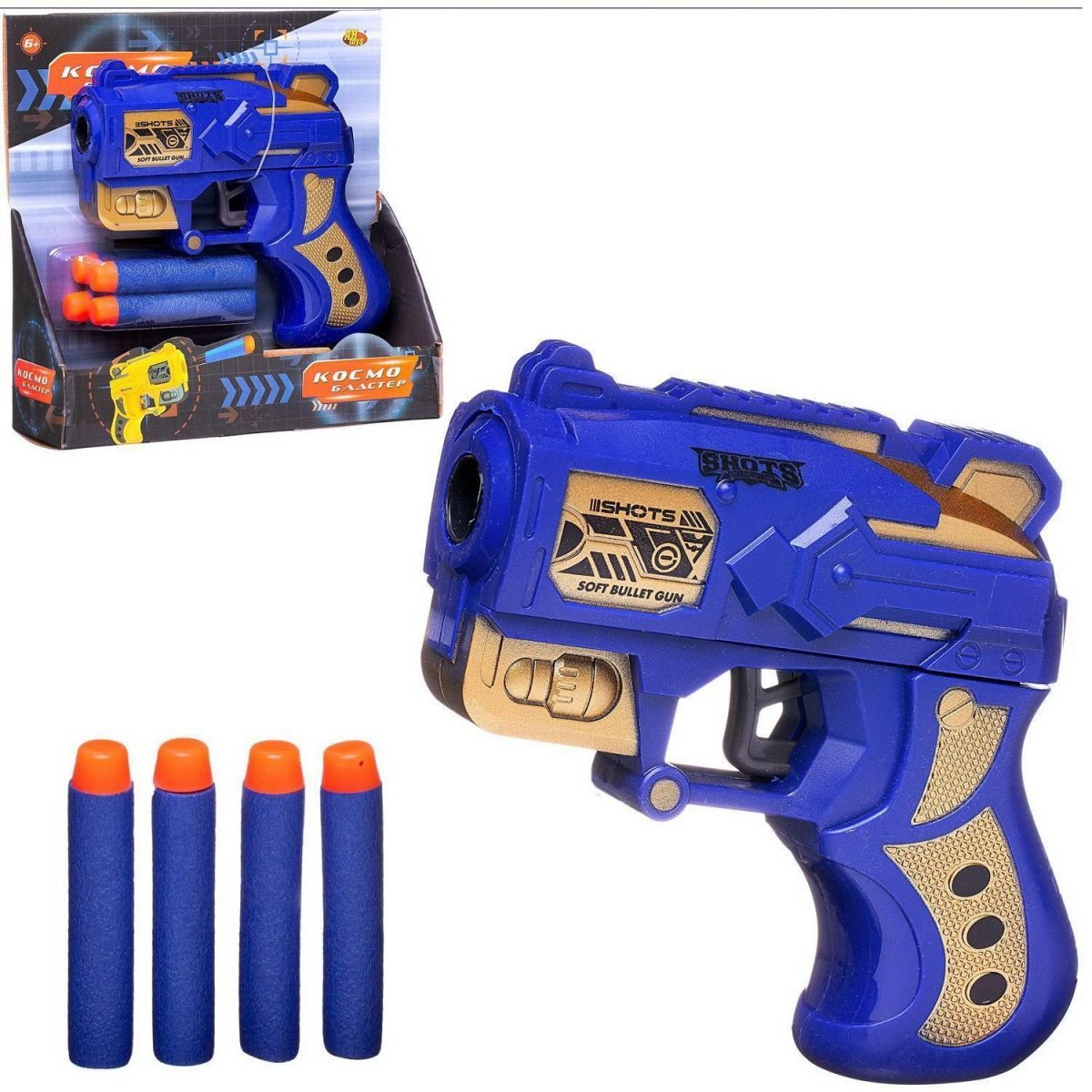 Бластер Abtoys Космобластер с 4 мягкими пулями (синий)