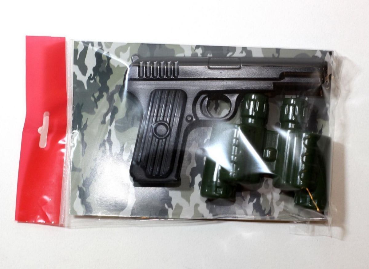 Пистолет и бинокль. Выдувка. Материал: пластмасса. Состав: пистолет чёрный (15,5 х 10,5 см), бинокль зелёный (7,8 х 6,5 см). Лёгкие по весу. Имеют углубления и выступы декоративного характера, гладкие по всей поверхности, не содержат механизмов, что делает игру безопасной и комфортной. Игра с игрушечным пистолетом и биноклем развивает подвижность, мелкую моторику, меткость, внимательность.