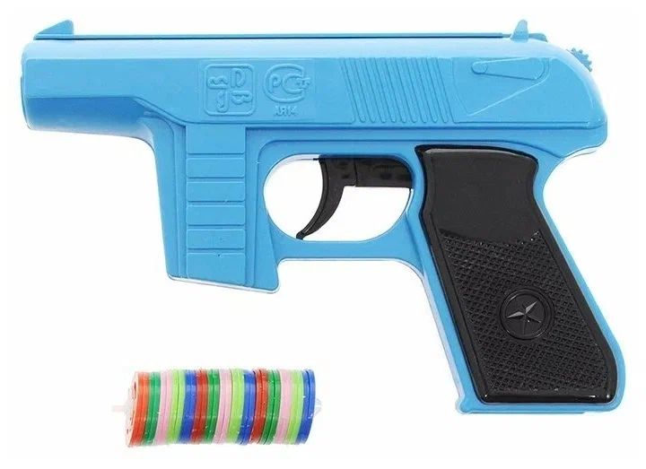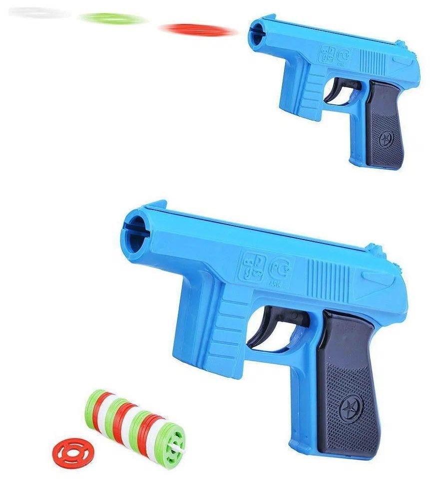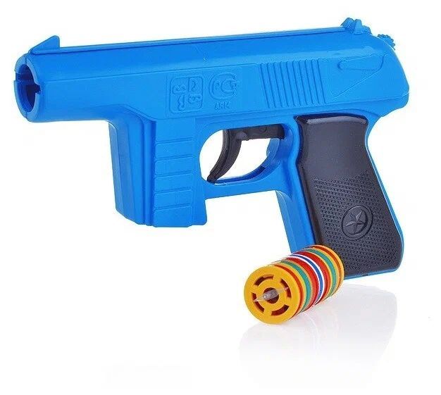 Какой мальчишка в детстве не играл в войнушку? Пистолет с дисковыми пулями станет отличным подарком для маленького сорванца. Пистолет пластмассовый стреляет пульками в виде дисков.