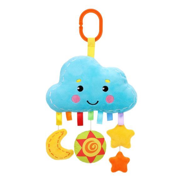 Функциональная подвеска «Облачко» быстро завоюет внимание малыша и будет отвлекать его от капризов! Игрушку можно закрепить на бортике детской кроватки, коляске или автокресле при помощи специального пластикового колечка. Подвеска сделана из красочных разноцветных текстильных материалов разной фактуры. Гладкие и ворсистые ткани использованы при создании элементов изделия для развития тактильных ощущений малыша: игрушку так приятно трогать ручками! К милому облачку прикреплены развивающие игрушки: месяц-шуршалка, солнышко-пищалка и 2 звёздочки. А ещё подвеска очень весело гремит при каждом встряхивании! Размер игрушки (ДхШхВ) составляет 20х6х23 см. Изделие изготовлено из текстильных материалов с элементами пластмассы. Рекомендованный возраст: 0 мес. +