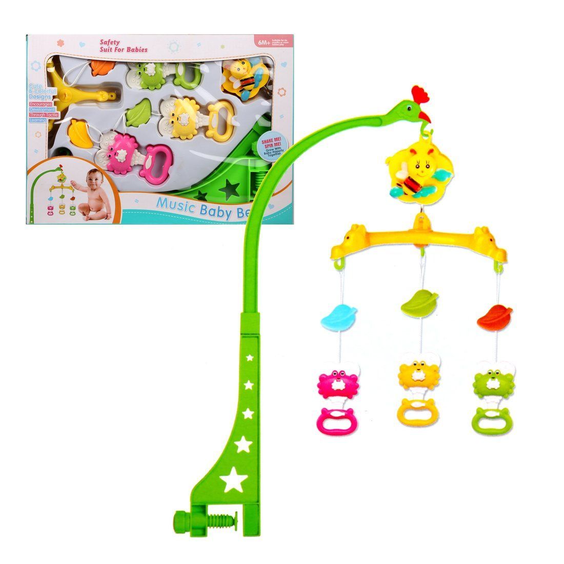 Для этой модели не нужны батарейки - мобиль работает на заводном механизме! Стоит покрутить волшебный рычажок, и 3 разноцветных крабика начнут вращаться под приятную и спокойную мелодию, словно карусели. Внутри подвесных игрушек - весёлая погремушка, звон которой так любят малыши. Кроха будет тянуться к этим интересным предметам ручками, развивая мелкую моторику рук, хватательный рефлекс и тактильные ощущения. На крабиках имеются фактурные элементы из мягкого материала - силикона, они пригодятся малышу во время роста первых молочных зубок.