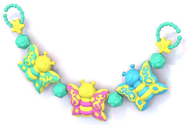 Замечательная подвеска «Бабочки» на коляску и кроватку подойдет для использования с первых месяцев жизни. Яркие цвета привлекают внимание и развивают зрительное восприятие. Желание дотянуться, потрогать или постучать по подвеске способствует развитию моторики, внимания и познавательной деятельности. Элементы подвески имеют форму бабочки с мягким рельефом. Универсальные крепежные кольца позволяют использовать подвеску как съемную, подвешивая ее над кроваткой, коляской или развивающим ковриком. Изготовлена игрушка из высококачественной пластмассы, поэтому абсолютно безопасна для ребенка.